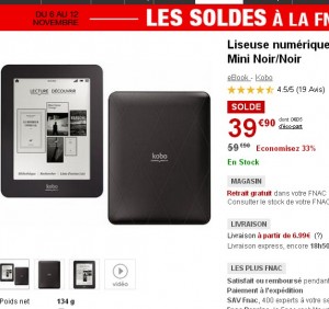 Liseuse Kobo mini à moins de 40 euros