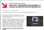 Vous desirez creer un site web mais vous ne savez pas comment faire ? Vous pouvez profiter de l’offre du magazine SVM qui propose durant 1 mois, le telechargement de la version complete du logiciel WEBCREATOR4 .