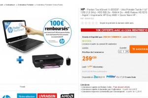 Super affaire pour un ensemble informatique avec un pc portable hp tactile 11 pouces, une imprimante wifi multifonction et une souris qui reviennent à 150 euros apres remboursement différé …