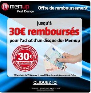 Si vous êtes à la recherche d’un disque dur externe ou multimédia  pour augmenter votre capacité de stockage en musique, films et  videos , profitez de l’offre de remboursement différé de Memup allant jusqu’à 30 euro  portant sur plusieurs de ses disques durs