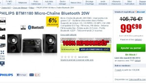 99.99 euros port inclus la micro chaine philips BTM1180 sur cdiscount … Mais 100% remboursée sous forme de 3 bons d’achats pour une commande d’ici le 3 juin …