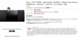Micro Chaine Sony – station accueil ipod iphone pour 109 euros port inclu