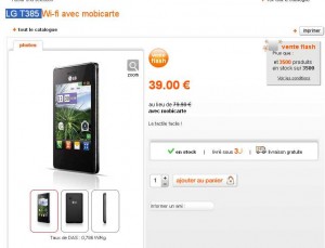 Mobile LG T385 Wifi à 39 euros port inclu en formule mobicarte prépayée .. en vente flash