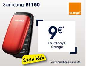 Cliquez ici pour aller directement voir la fiche du samsung E1150 (il faut bien selectionner au dessous « prepayé » pour bien commander le telephon en formule sans engagement)