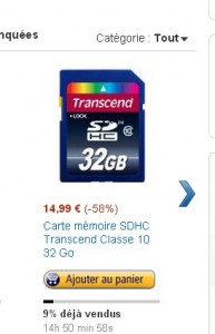 Moins de 15 euros la carte sd 32go classe 10