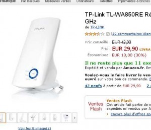 Vous désirez augmenter la portée de votre reseau wifi ? bonne affaire sur amazon pour un répéteur wifi de la marque tplink .. 29.9 euros port inclu le repeteur ..