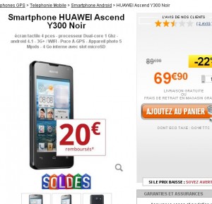 Moins de 50 euros le smartphone 4 pouces, dual core Huawei Y300