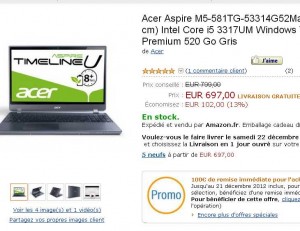 Moins de 600 euros l’ultrabook Acer M5-581TG-53314G52Mass qui se vend ailleurs entre 700 et 800 euros