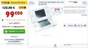 Si vous désirez donc une nintendo ds , vous pouvez donc allez chez auchan ou alors l’acquerir chez cdiscount (il faudra cependant ajouter des frais de port .. choisissez la livraison en relais casino, ca coute moins cher ..)