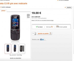 Nokia C2-05 en formule mobicarte à 19 euros port inclu .. toujours dispo