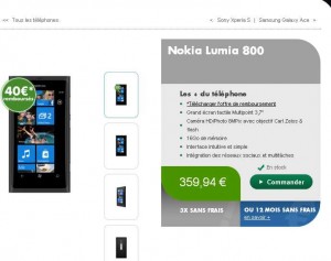 Nokia Lumia 800 à 319 euros avec un forfait sans engagement b and you