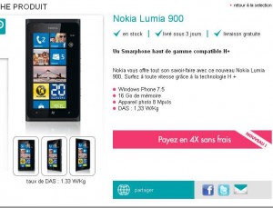 Nokia Lumia 900 à moins de 440 euros en forfait sans engagement sosh
