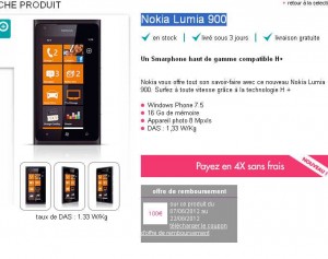 Alors que le windowsphone NOKIA LUMIA 900 se vend en nu autour de 500 euros, on peut l’obtenir pour pres de 200 euros de moins avec un forfait sans engagement chez sosh ..
