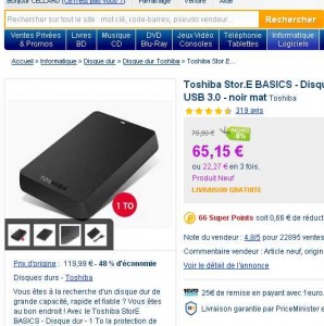 offre informatique : Disque dur externe 1to toshiba usb3 2.5 pouces à 65€ (voire même 57 euros )