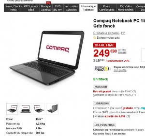 Ordinateur portable pas cher : 250 euros un pc portable compaq 15 pouces