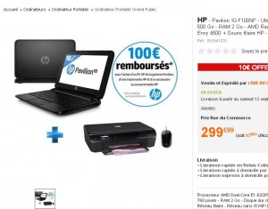 Vendu donc 299.99 euros moins 10 euros avec le code promo « BEST10 » , il y a 100 euros de remboursement de la part de HP pour un achat d’ici le 14 septembre ..