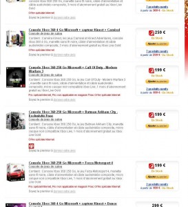 Super offre sur le site de la fnac .. Plusieurs packs xbox360 + jeu sont à 199 euros livraison incluse : il s’agit de Xbox360 250go + Call of duty 3 , Xbox360 250go + batman , Xbox360 250go + Forza 4 , Xbox360 250go + gears of war 3 , Xbox360 250go + forza 3 et crisis
