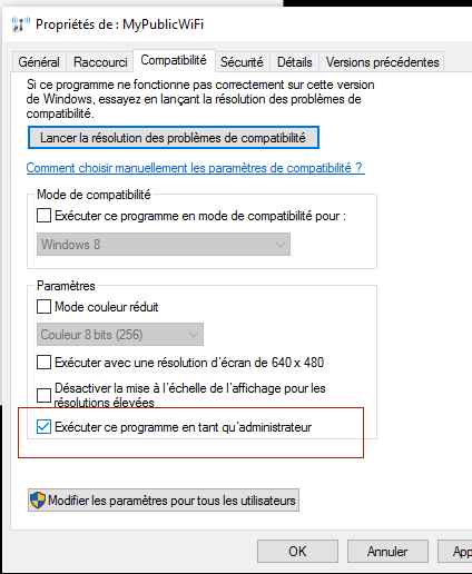 Une fois le logiciel installé , il faut cliquer sur son icone avec le bouton droit de la souris ,et dans la fenetre qui apparait aller dans l’onglet compatibilité pour cocher la case « executer en tant qu’administrateur » puis cliquez sur ok pour valider