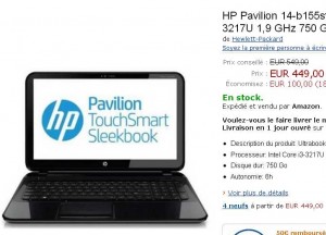A la recherche d’un pc portable tactile ? Sur amazon dans les ventes flash jusqu’au 5 juillet se trouve proposé à 449 euros le HP Pavilion 14-b155sf .. pc portable avec windows 8 , ecran 14 pouces tactile, avec un processeur core i3 à 1.9 ghz .. Avec un disque dur de 750 go, 4go de mémoire vive .. Le prix de 449 euros fait déjà économiser 50 euros par rapport à la fnac et 100 euros par rapport à boulanger ..