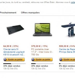 Si vous cherchez un pc portable avec grand écran , la vente eclair du 12 mars peut vous interesser sur amazon : il y a un pc portable acer 17 pouces donc , avec processeur core i3 , un disque dur de 750 go ,4go de memoire vive à 379 euros livraison incluse ..