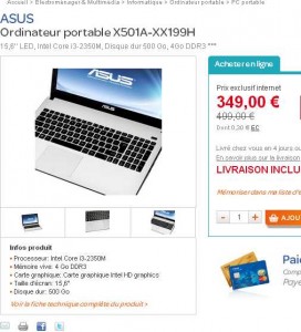Il n’a par contre qu’un chipset graphique sans mémoire dédié.. Il n’empeche qu’il est à priori tres rare de trouver un pc portable avec core i3 à moins de 400 euros .. Sur amazon un modele assez proche (X501A-XX370H – meme proc , meme disque dur, meme memoire, meme chipstet ) est à 427€