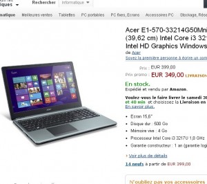 A la recherche d’un nouveau pc portable ? Sur amazon en vente éclair le 29/11 on a un pc portable acer de 15 pouces avec un processeur core i3 à moins de 350 euros livraison incluse ..