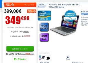 A la recherche d’un pc portable ? Offre interessante sur cdiscount qui propose à moins de 350 euros livraison incluse en point retrait un ordinateur portable packard bell 15 pouces avec processeur core i3 .. Un pc portable disposant de 4go de mémoire vive, un disque dur de 500go , un lecteur graveur de dvd ..