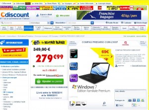 la meilleure offre du moment au niveau prix pour un pc portable (vu que l’offre auchan était une erreur) : Sur cdiscount, un pc portable dual core est à moins de 280 euros (hors frais de port)..
