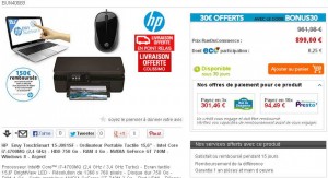 Pc portable tactile core i7 + imprimante + souris qui reviennent à 750 euros