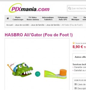 le jeu Hasbro Ali Gator pour petits enfants vendu 8.9 euros contre plus de 20 euros partout ailleurs (voir ce jeu hasbro )