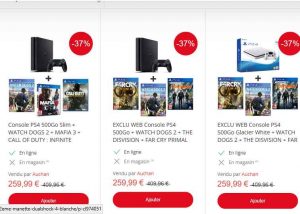 Sur Auchan , il y a une vente flash concernant 3 packs avec la console sony pS4 500go et 3 jeux …