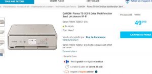 Bon plan imprimante canon PIXMA TS5053 qui revient à moins de 30€