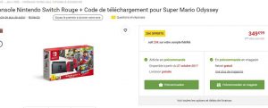 Avec pour 349€ , la console de jeu nintendo switch , avec le code de téléchargement du jeu SUPER MARIO ODYSSEY …