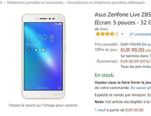 Bon plan pour un smartphone de marque : avec l’ASUS ZENFONE LIVE ZB501KL à moins de 100€ sur amazon …