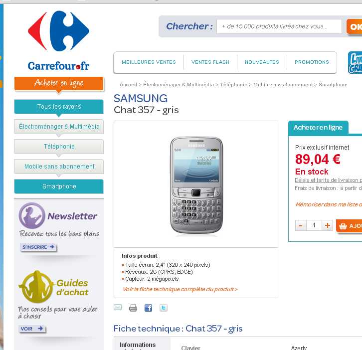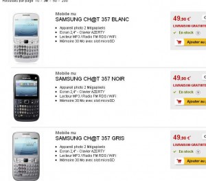 Portable à clavier wifi Samsung Chat357 à moins de 50 euros (contre entre 65- 70)