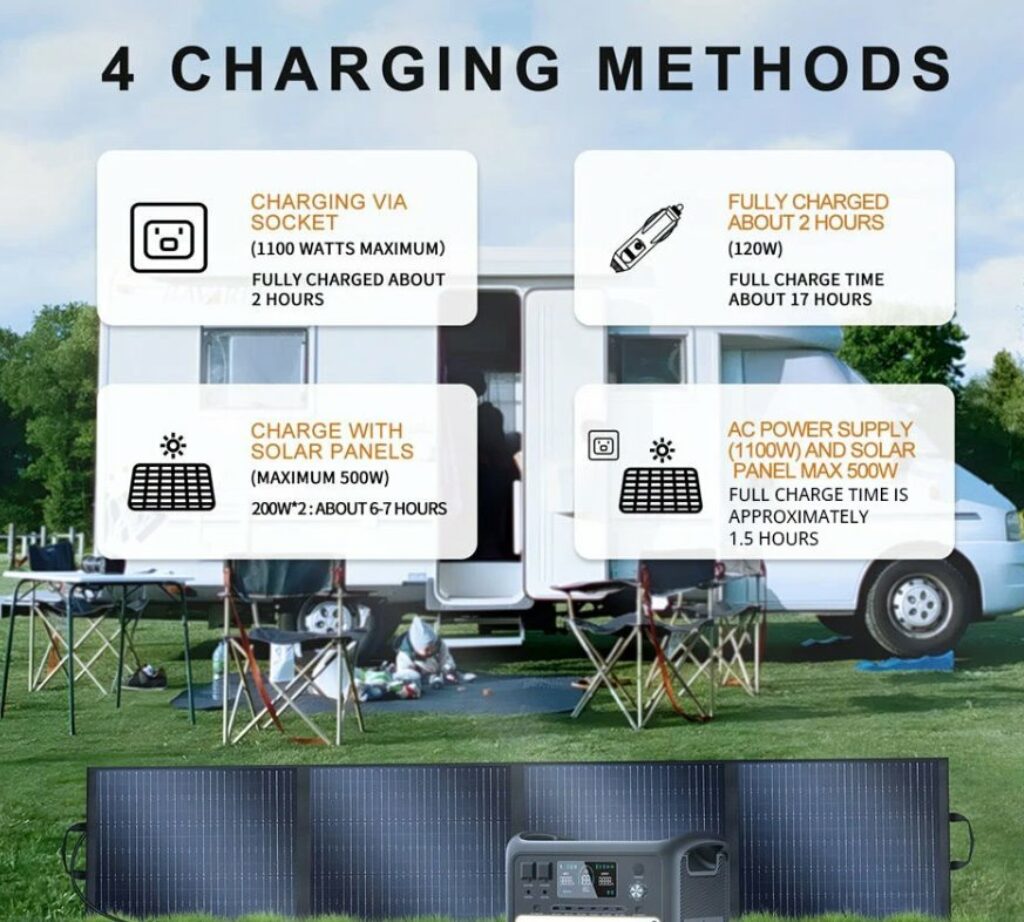 Elle dispose de 13 sorties , peut se charger sur secteur , allume cigare ou avec des panneaux solaires …