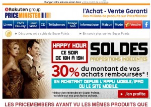 Priceminister : 30 pourcent en bons d’achats de 18 à 19 heures le 8 janvier .. mega affaire