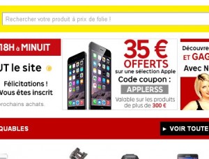 Bonne affaire sur priceminister, pour acheter un appareil apple … Le code de reduction « APPLERSS » donne 35 euros de remise pour tout achat de plus de 300 euros en appareils apple … Un code valable jusqu’au 8 octobre mais dans la limite de 800 utilisations …