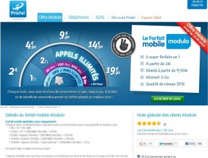 Prixtel vient de modifier son forfait mobile qui devient très interessant .. En effet le forfait modulo sans engagement s’ajuste chaque mois en fonction de la consommation de l’utilisateur entre 2 et 19.90 euros .. Ce qui est très intéressant c’est que la tarification la plus élevée propose des prestations identiques aux forfaits de bandyou et de freemobile aux mêmes prix .. A savoir Appels Illimités , sms mms illimités et 3go de traffic internet ..