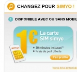 Puce sim prépayée simyo à 1 euro avec 20 minutes de communications incluses