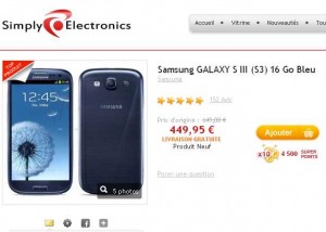 Samsung Galaxy S3 qui revient à 405 euros ( 449 – 45 de bons d’achats )