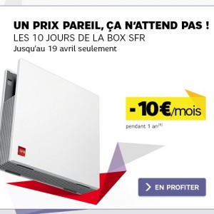 Sfr Box : 10 euros de remise par mois durant 1 an ( moins de 20€ / mois l’abo adsl + telephone + tv )