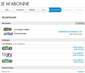 Aller sur la page d’abonnement au couple canalplus , canalsat panorama (il y a aussi durant 3 mois les chaines foot+ et binsport d’offertes )
