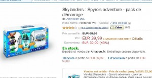 Très bonne affaire sur amazon concernant le jeu pour console Wii , Sylanders Spyro’s adventure pack de demarrage ..