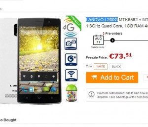 Mis en avant sur le site chinois gearbest, un smartphone 5 pouces 4G à moins de 75 euros … 73.51 euros port inclus le landvo l200g avec un processeur quad core , 1go de memoire vive, dual sim , appareil photos 5 millions de pixels, webcam de 2 millions de pixels …