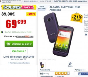 Smartphone Alcatel OT918D à 69.99 euros en solde