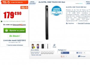 Vous désirez un bon smartphone à moins de 200 euros, et en plus vous aimez le cyclisme ? Bonne affaire sur l’alcatel OT995 dont on a deja parlé et qui est à 179.99 euros livraison incluse en point relais chez cdiscount ..