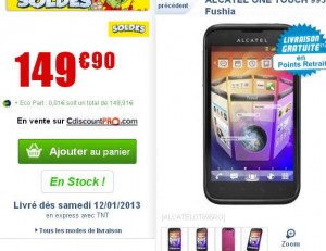 Bon prix sur le smartphone alcatel One touch 995 .. Celui ci se vend encore couramment entre 180 -200 euros mais sur cdiscount il est en vente flash à 149.9 euros ..