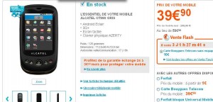Si vous cherchez un smartphone android pas cher , Bouygues propose une vente flash concernant l’Alcatel OT980 en formule prepayée à carte sans engagement ..