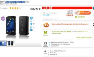 Si vous cherchez un smartphone android pas mal et que vous vous êtes fixé un prix maximum de 100 euros, il semble y avoir une très bonne affaire du coté des soldes chez rue du commerce , concernant l’XPERIA MINI de Sony Ericsson..